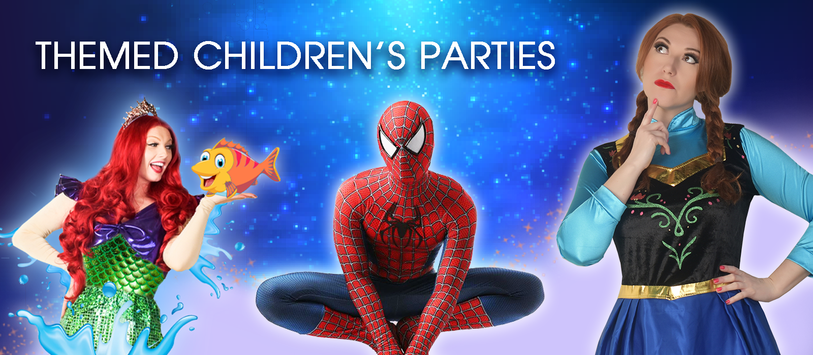 We can send a character to your home or specific venue and all our party packages are completely self-contained which means our parties are hassle free. All you need to worry about is the venue, invites, decoration, cake, food and drink. Leave everything else up to us. Why not check out our fun and enchanting party themes, options, and party lengths.